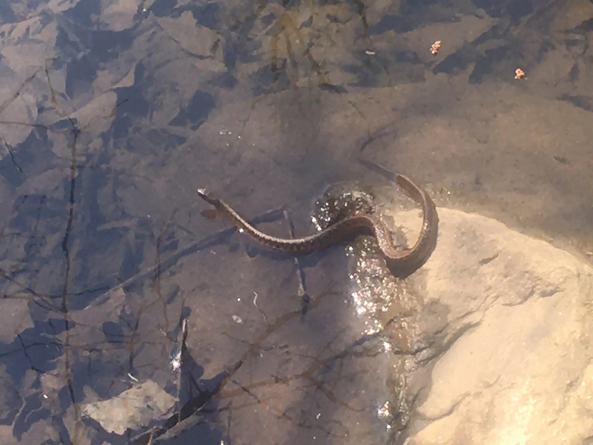 A garter snake practicing social distancing near Ridley Creek in Rose Valley. Photo: Silla Prown