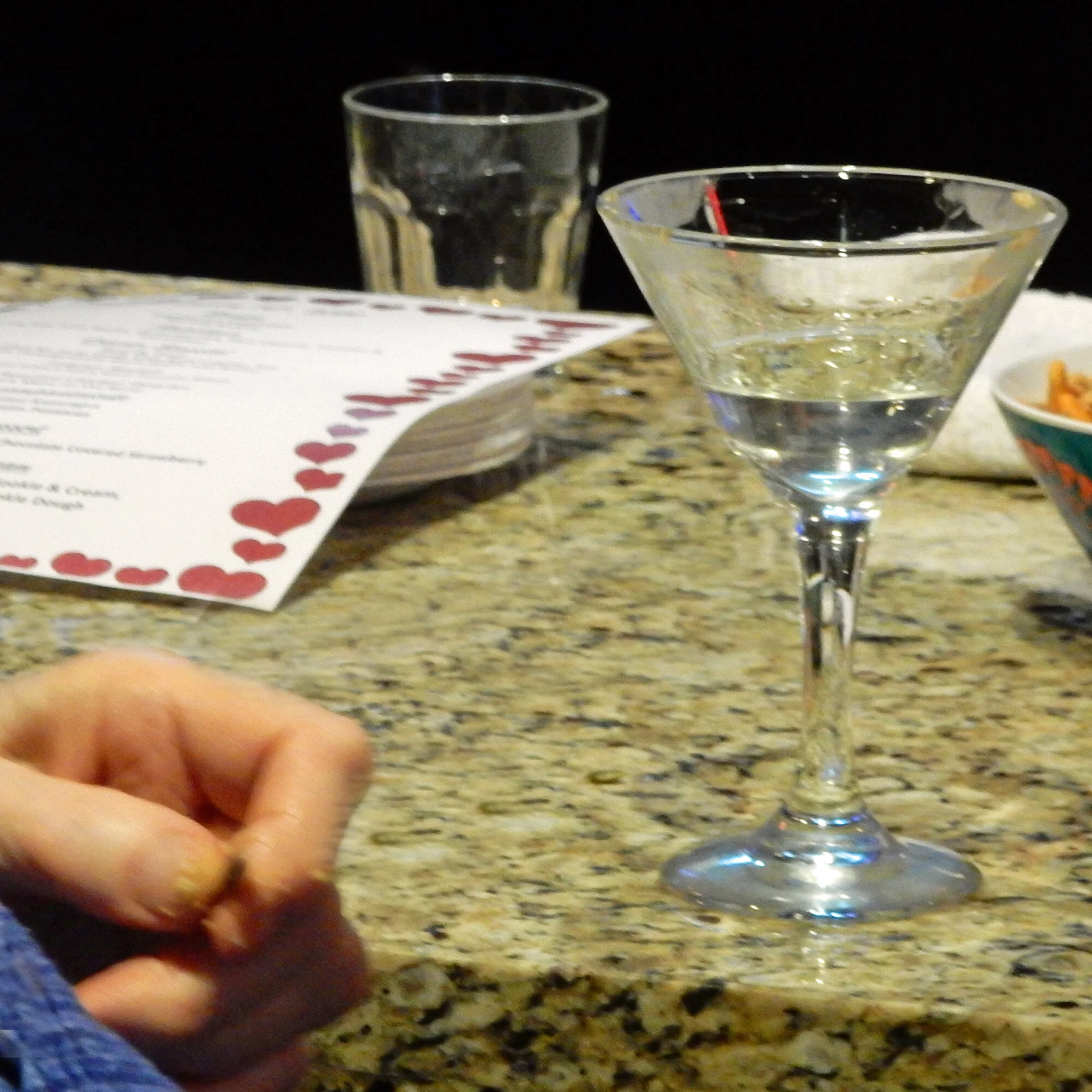 One of our older residents comes in every night and has his special martini. Just one. Every night. He sits and savors that drink and talks to Tony. Tony is a big part of his day.