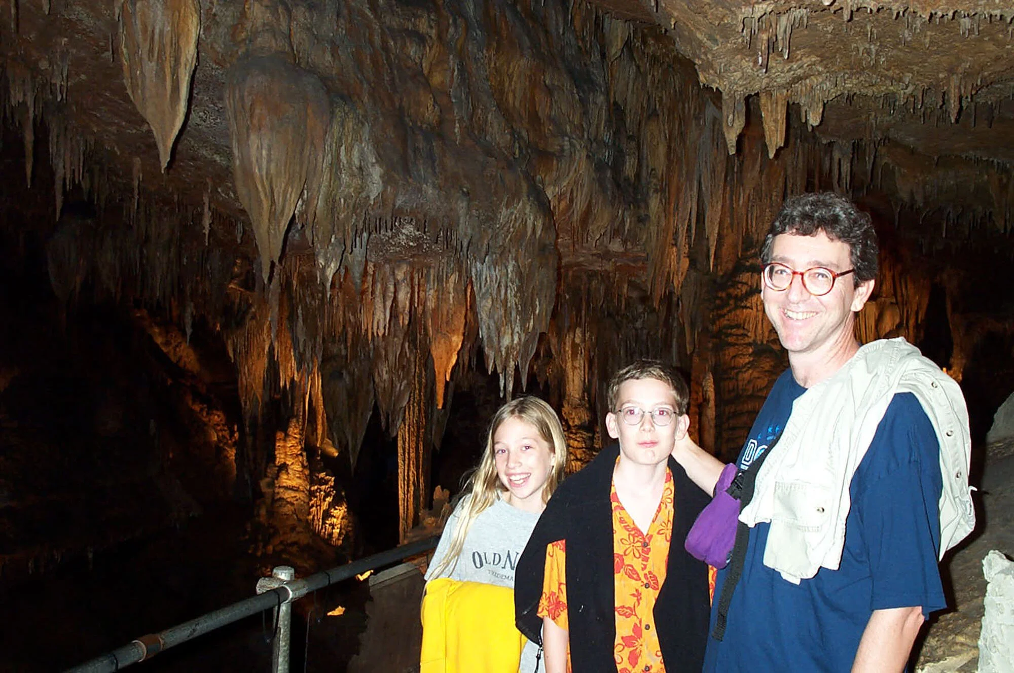 Jon Cohen with his children, Ben and Molly, in a cavern somewhere.